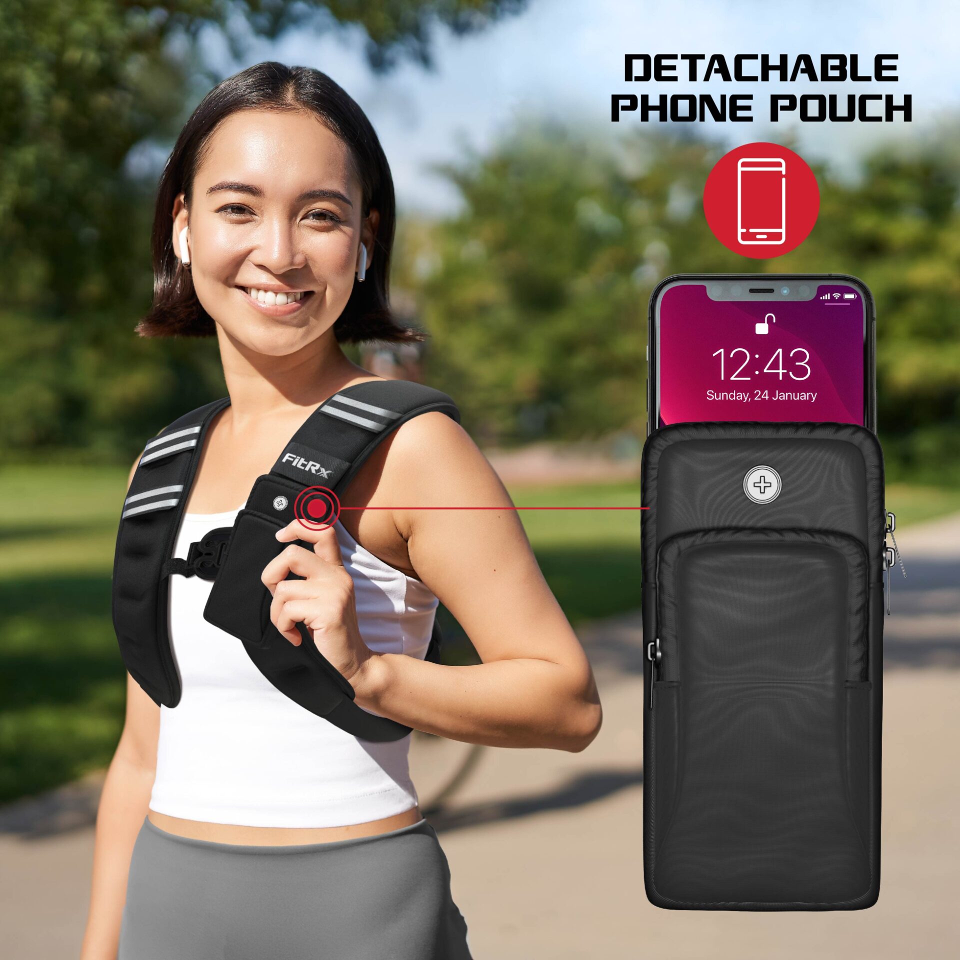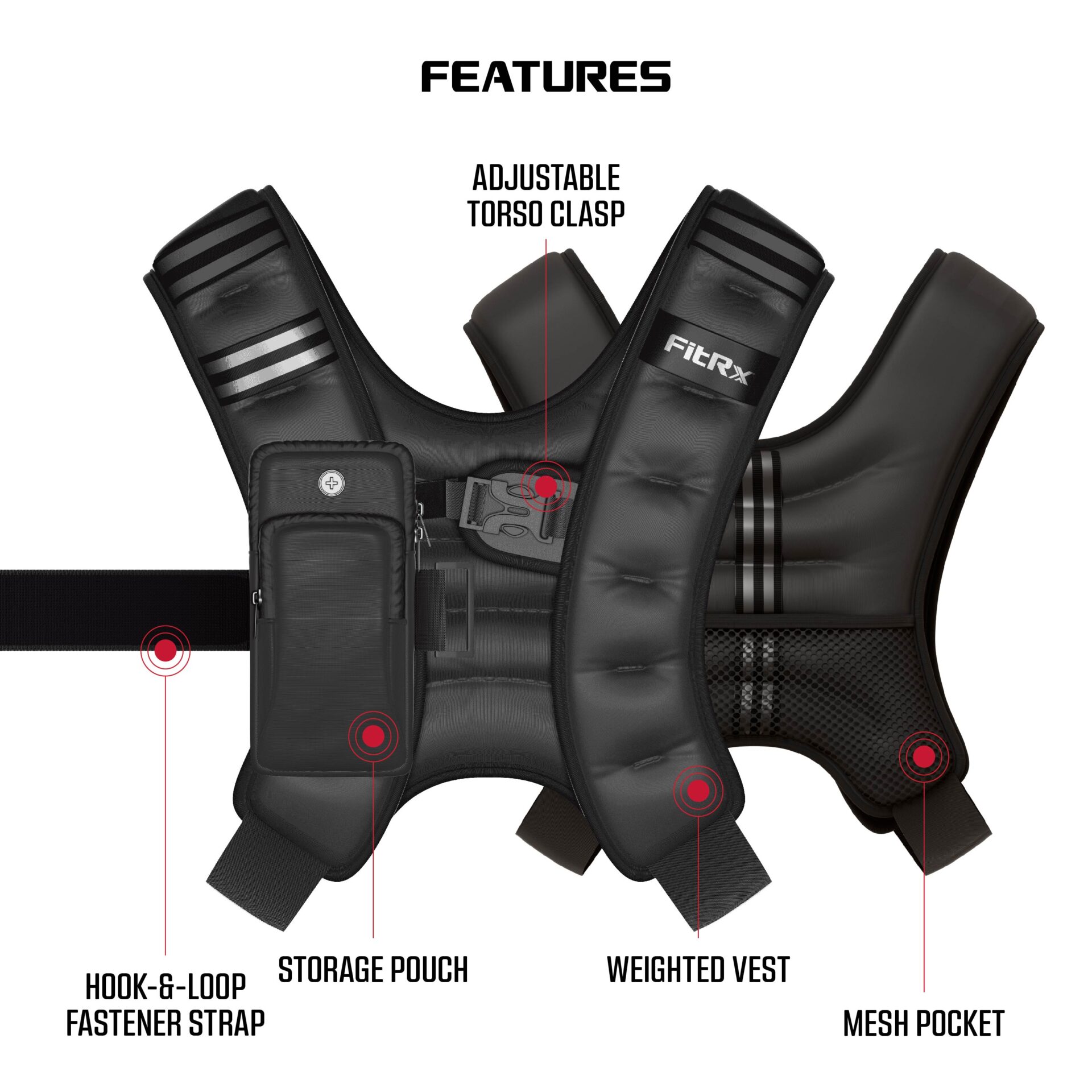 With the FitRx Weighted Vest training gear, you can ramp up the intensity of your workouts! Increasing the load on your body makes your cardiovascular system and muscles work harder during any exercise activity, leading to improved stamina, muscle growth, and weight loss. Plus, the storage pouch attaches easily to keep your phone, keys, and other belongings secure. The FitRx 8lb Weight Vest brings you one step closer to your fitness goals!