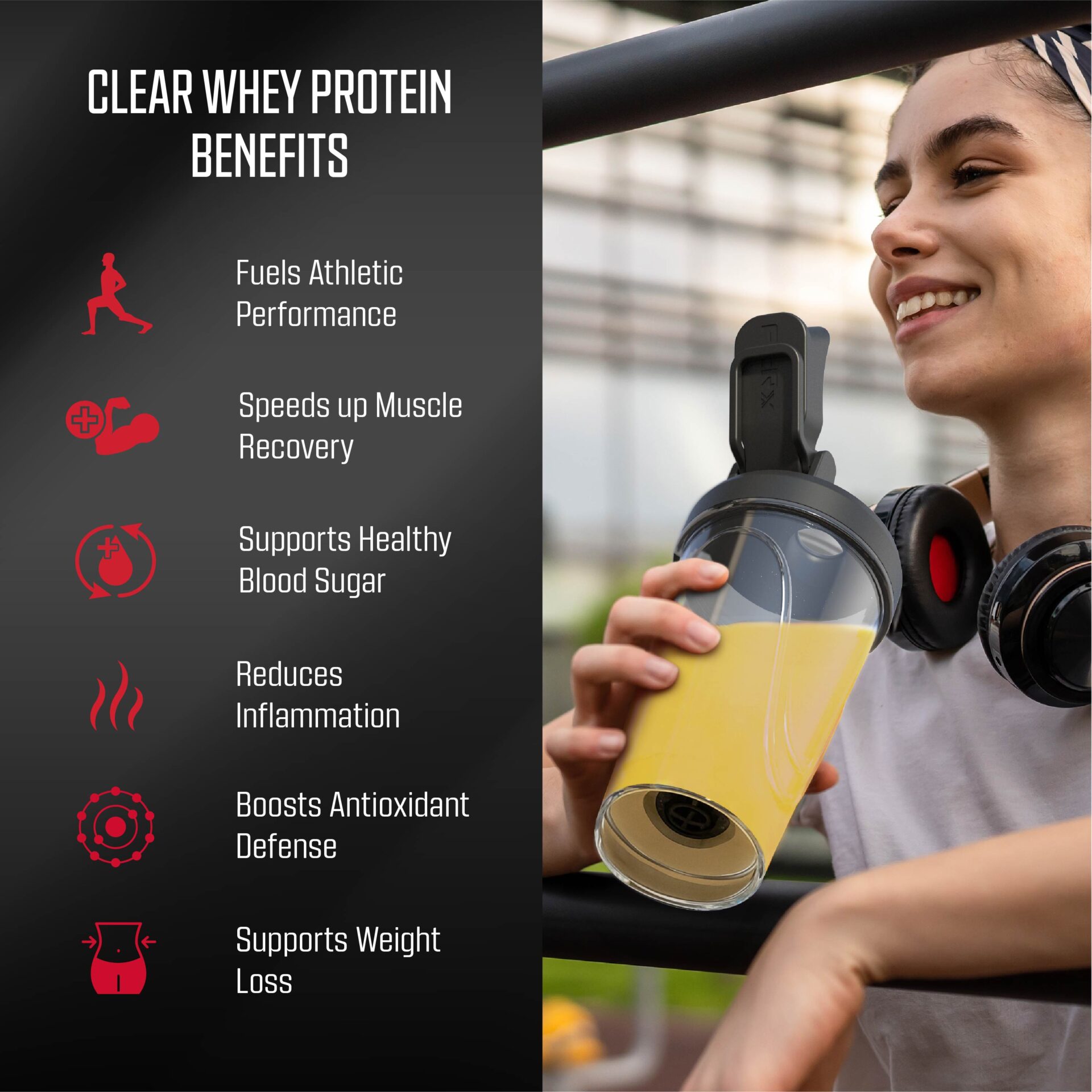 • Highly Soluble Whey Protein Powder – Clear whey formula mixes instantly for a smooth, refreshing drink without the heavy texture of traditional protein powder