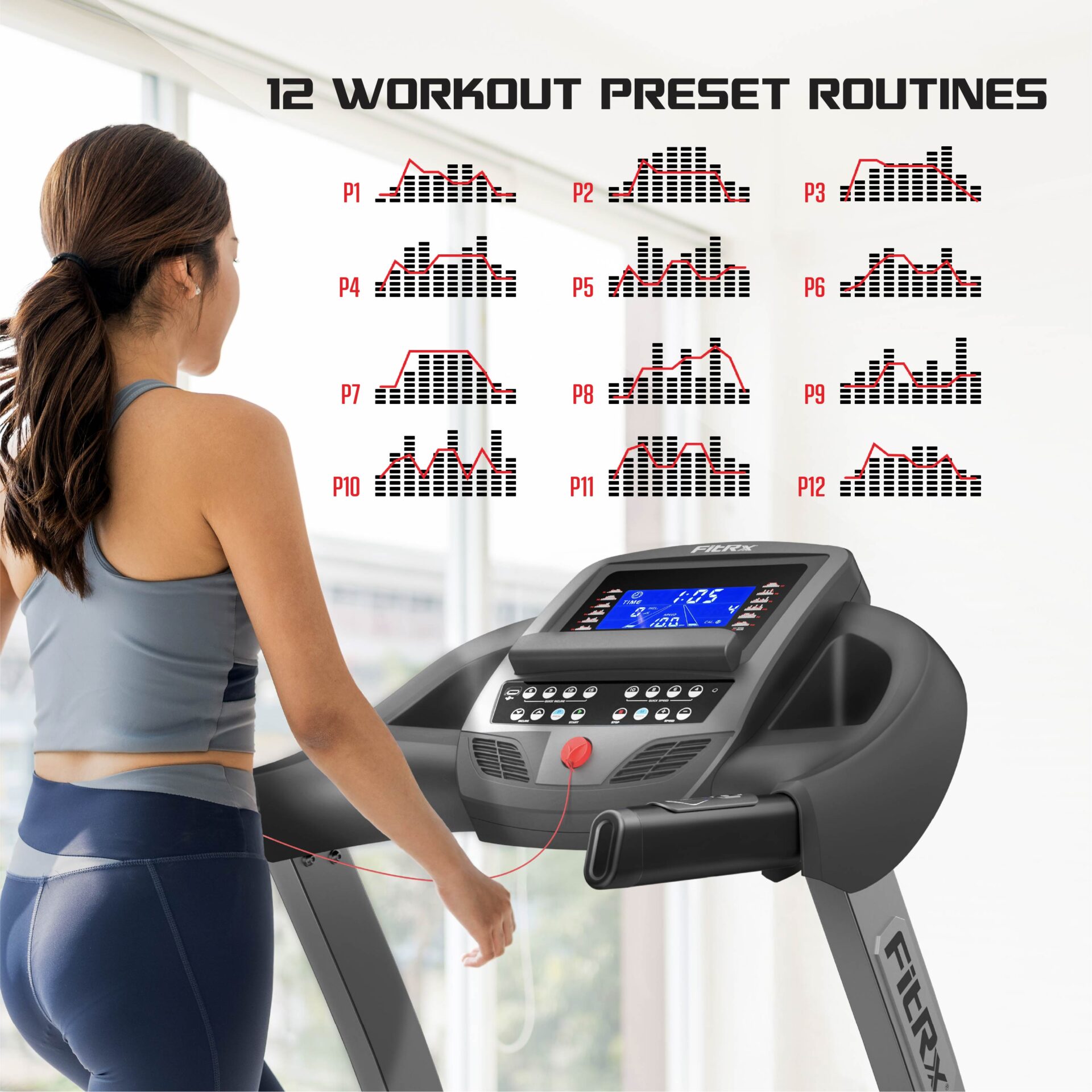 Stay on top of your fitness routine with this FitRx Crossrun Treadmill, built for comfort, performance, and versatility. With a speed range of 0.6–10 MPH, a peak motor power of 5.0HP, and a running belt area of 18 x 50in, it’s a reliable treadmill for home use whether you’re walking, jogging, or running. Designed with a 15% incline, it helps you take your workouts to the next level while keeping your training dynamic.
