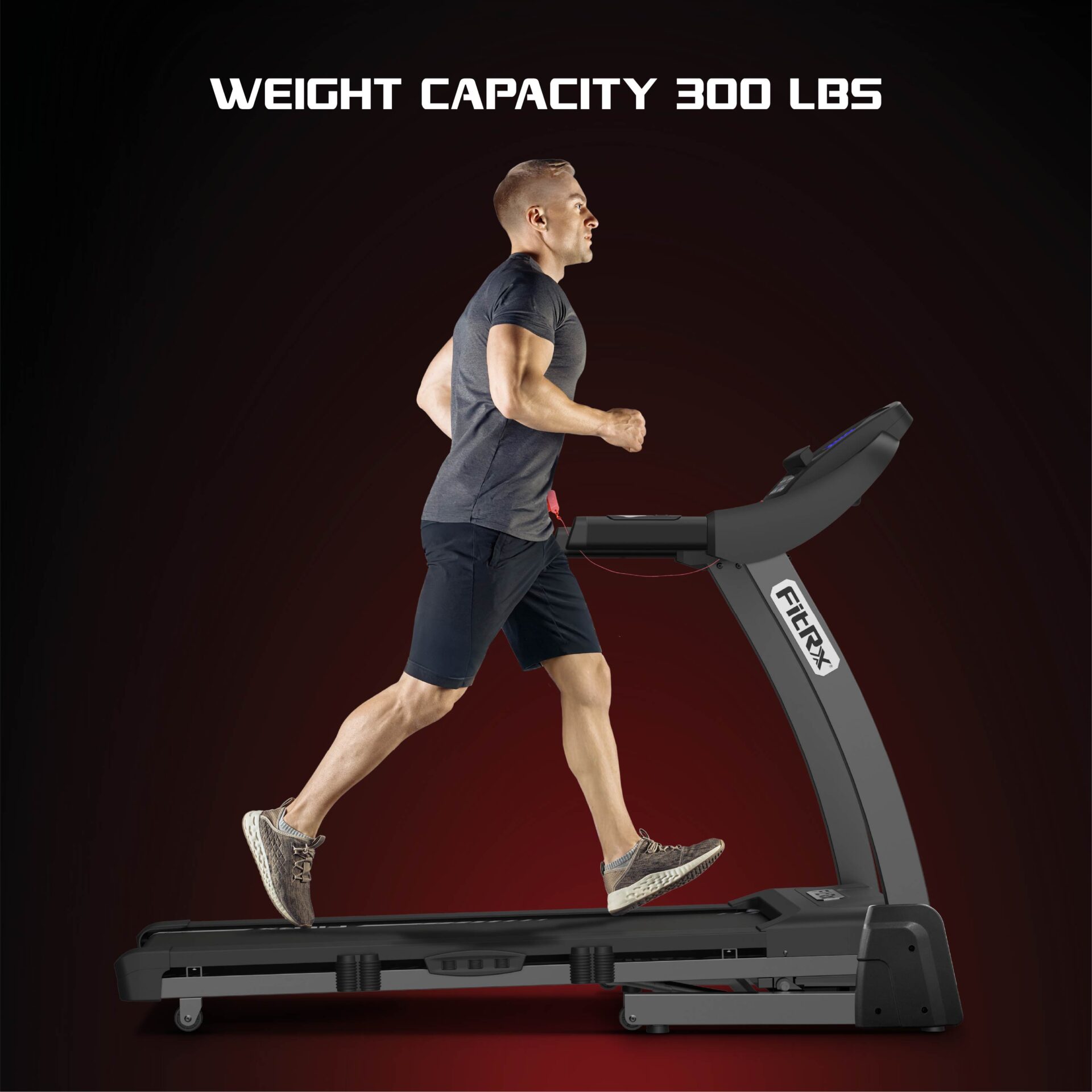 • 300 lbs user weight foldable treadmill with sturdy build