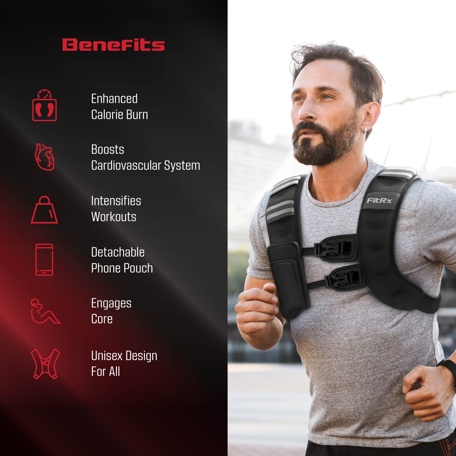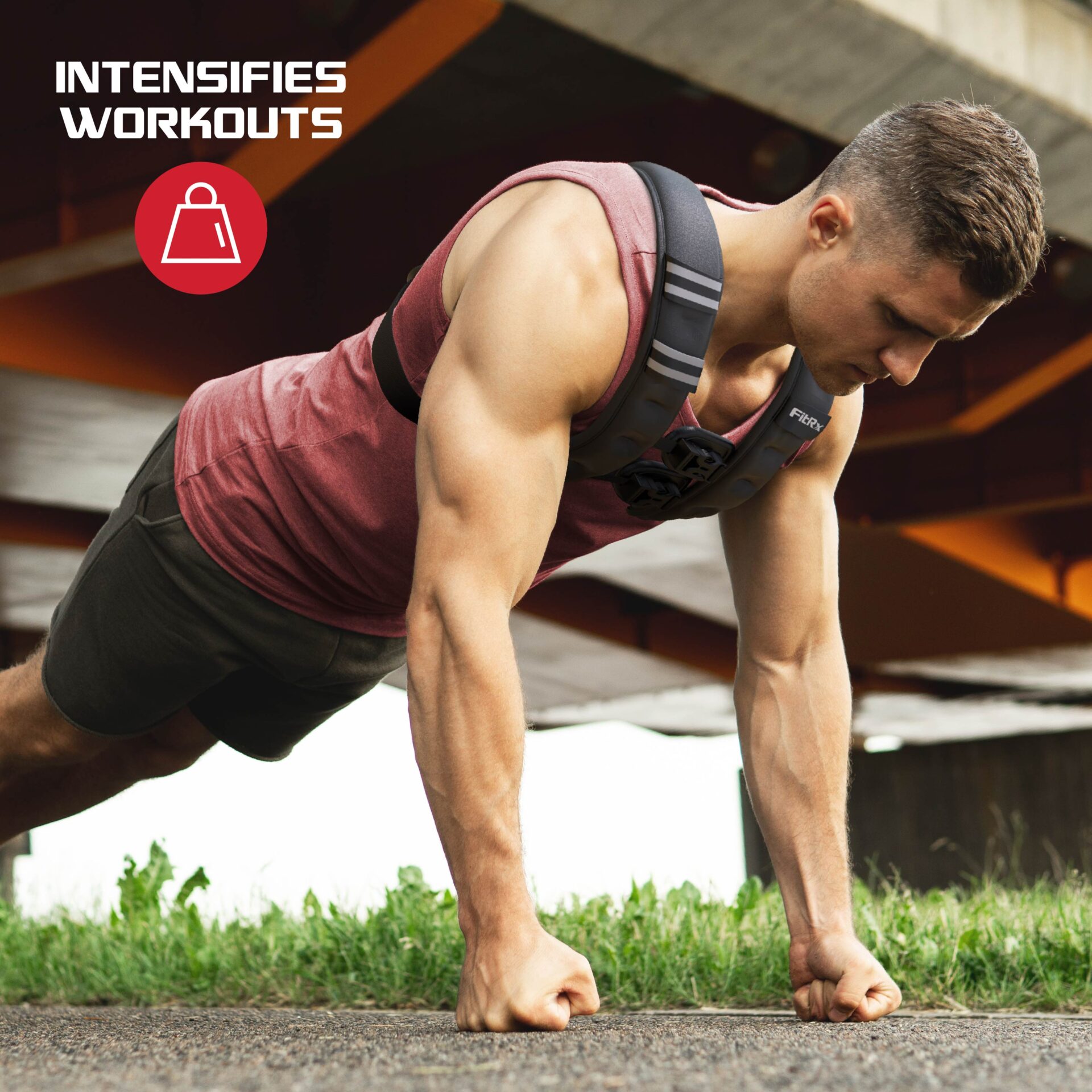 The FitRx 20 lb weighted vest increases the load on your body so the cardiovascular system and muscles work harder during exercise. This added resistance is designed to intensify workouts and can help improve stamina, stimulate muscle growth, and promote weight loss as part of a structured routine. The neoprene-coated weight vest keeps the added weight in a compact, wearable format for training.